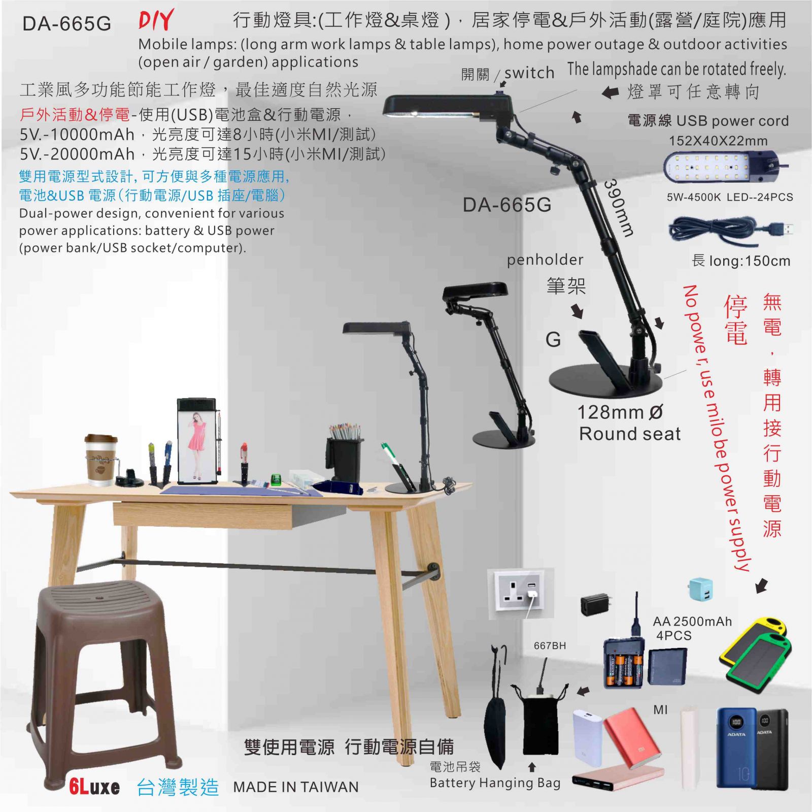 台灣製造,停電無電, 室內&戶外應用(行動電源) 停電無電, 室內&戶外應用(行動電源)10000 mAh(小)可亮度8小時/20000 mAh(大)可亮度15小時(小米行動電源測量)
