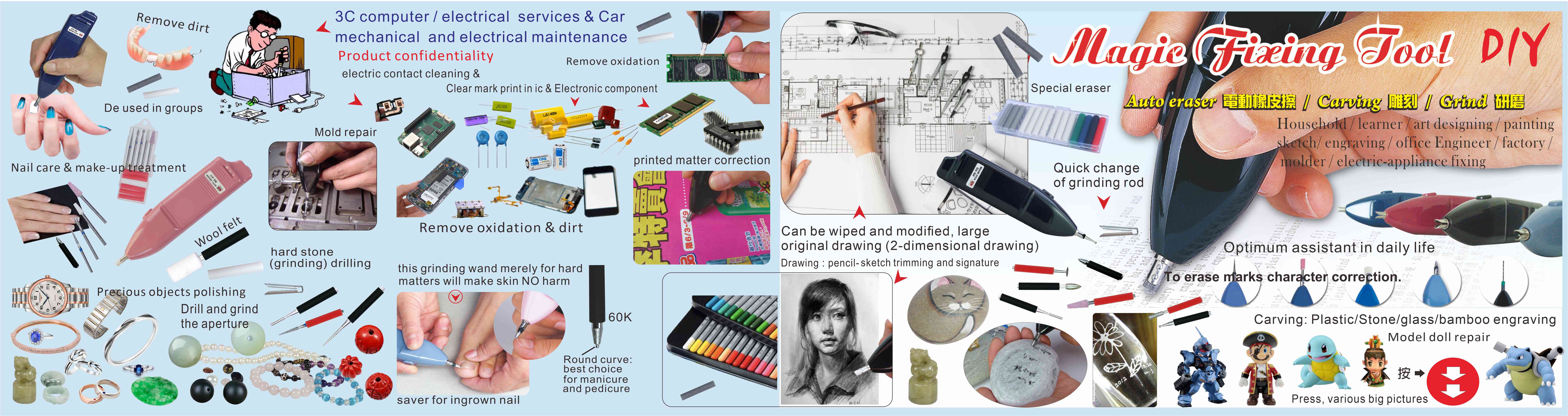 Magic Fixing Tool [魔擦磨鑽]:每(各)組不同配件組合模式參考,(電動橡皮擦)/(修指組)/(研磨 雕刻組)