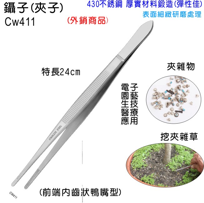 24cm特長 不鏽鋼鑷子,聶子(夾子)厚實材料鍛造(彈性佳)表面細緻處理,電子/園藝/生技/醫療應用CW411