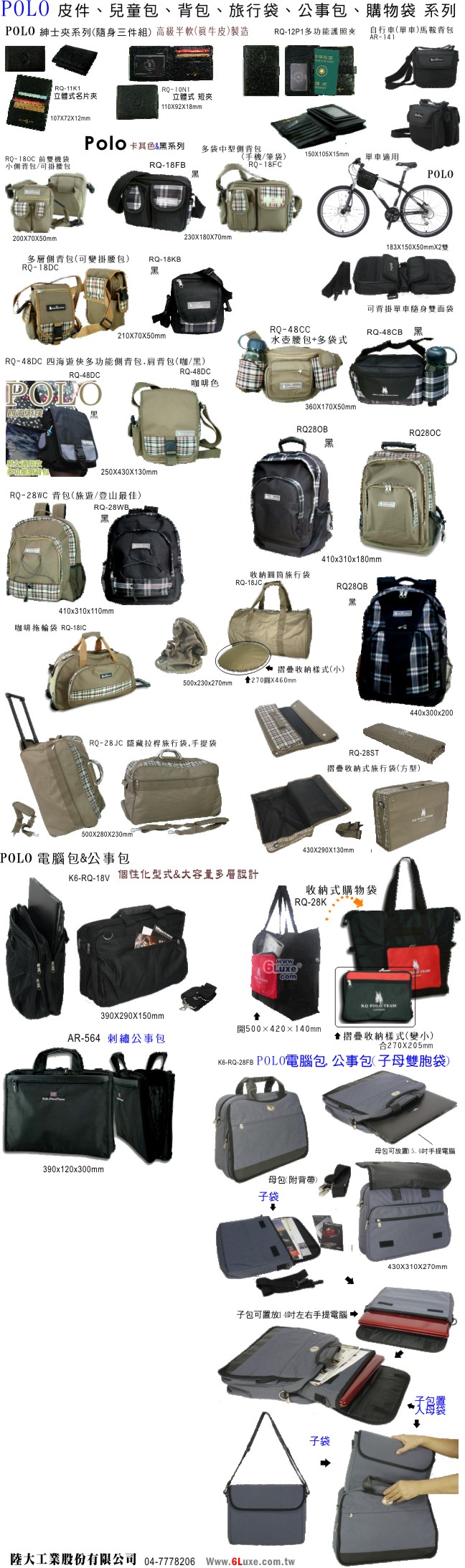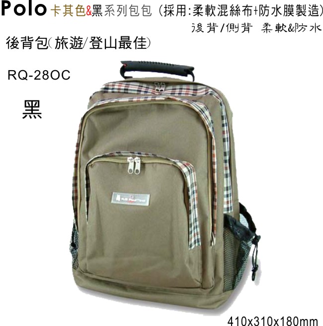 Polo卡其色&黑系列包包 (採用:柔軟混絲布+防水膜製造) 後背/側背 柔軟&防水