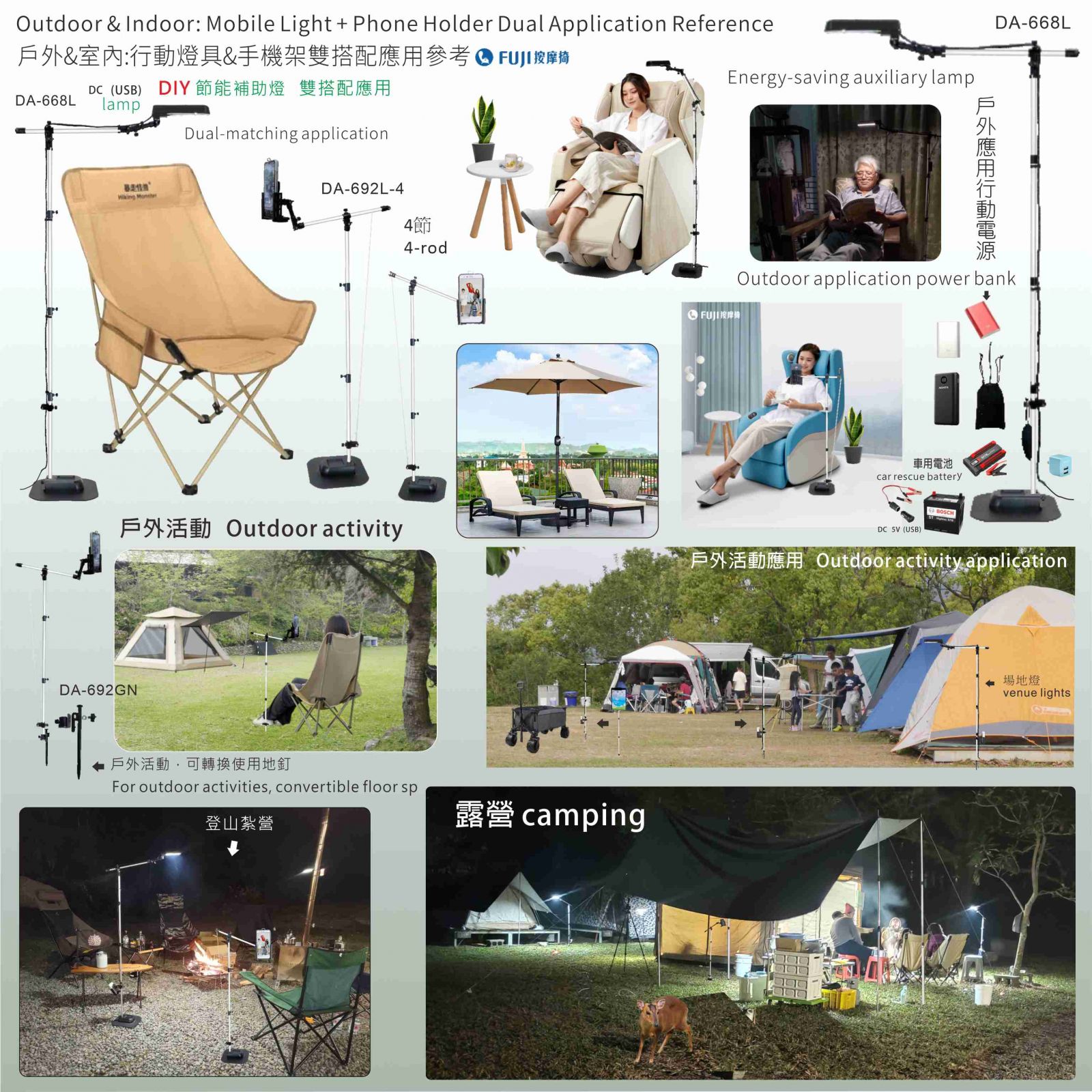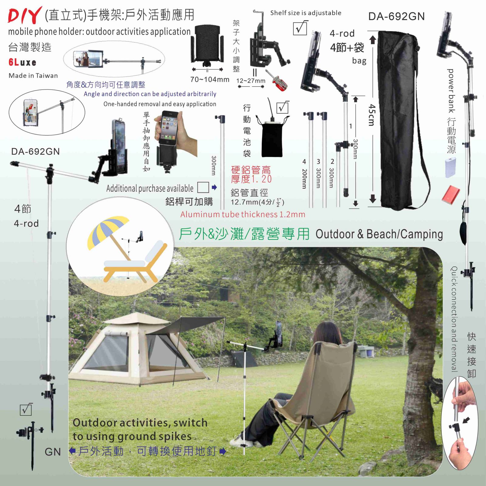 戶外露營:主架4節+地釘組+ 收納袋+行動電源應用吊掛袋