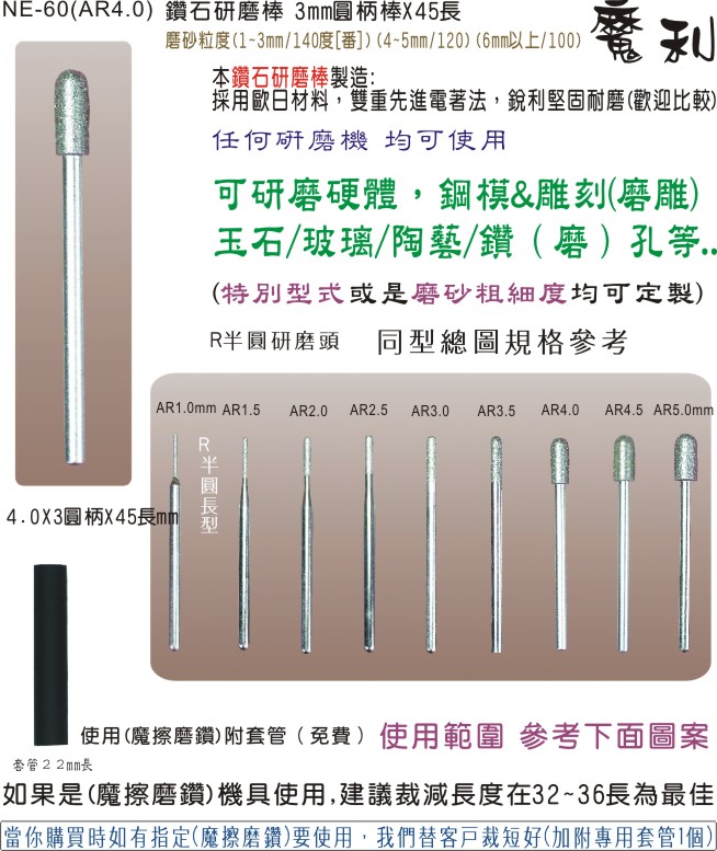 鑽石研磨棒R4.0mm頭,電動研磨機/鑽石砂輪 (台製外銷) NE-60(AR4.0)