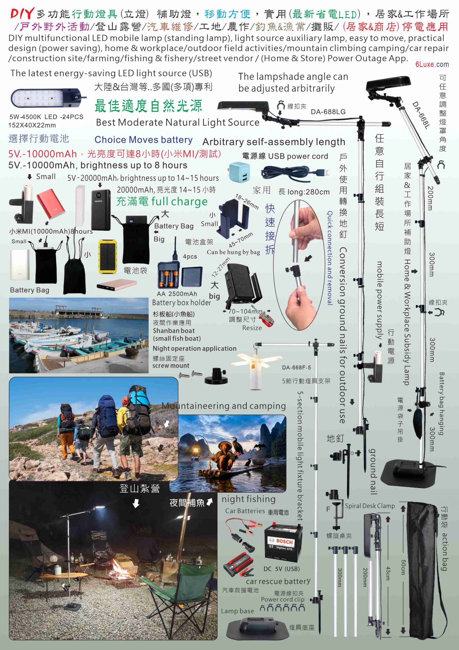 Industrial style multifunctional energy-saving work lamp (standing lamp) floor lamp/camping lamp/field lamp