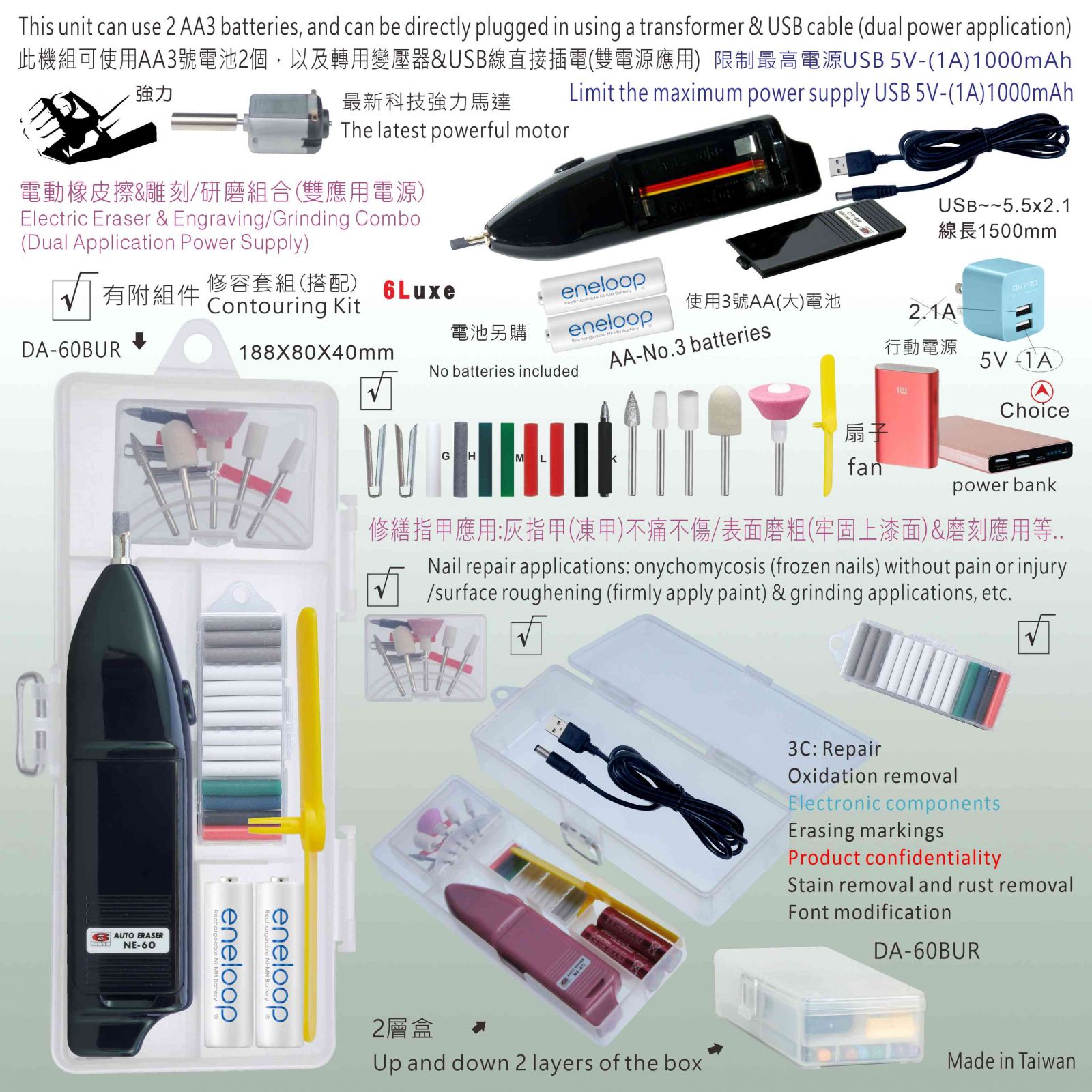 (NE-60 魔法工具)是一種多用途和多功能的工具,可以激發學生、藝術家和社會工作者靈活思考和工作應用(用於手動培訓)。此工具的使用是靈活的。它配備了特殊的電機(節能,堅固,精確製造),可廣泛應用於雕刻和研磨,適用;模具維修,機器/電機維護修繕,擦拭和校正文字和紙上線條,美甲修飾等…各個行業。